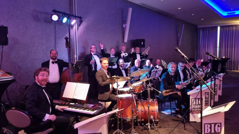 De 18 koppige Big Dipper Big Band heeft een ruim feestelijk repertoire waarin oude en nieuwere nummers terugkomen, oorspronkelijk materiaal of in een jazzjasje gestoken. De band wordt aangevuld met onze zangers Charlotte en Frank.