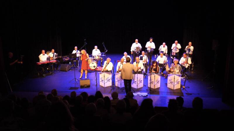 De 18 man sterke formatie onder de muzikale leiding van Frank Groenendijk, kent flink wat blaaswerk in de vorm van trompetten, trombones en saxofoons, aangevuld met een ritme sectie bestaande uit bas, gitaar, drums en keyboard die deze bigband helemaal compleet maakt. En natuurlijk, wat is een bigband zonder zangeres.